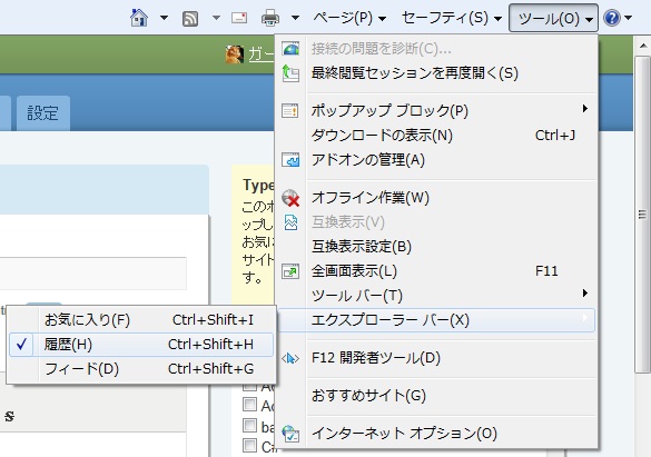 Internet Explorer 9 で閲覧履歴を表示させる方法が、ようやく分かった。